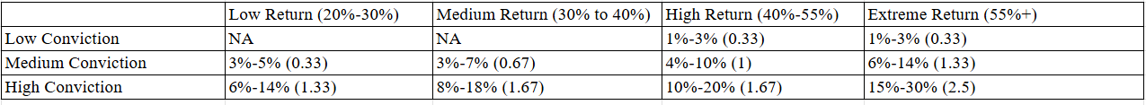 How I decide what % of the portfolio to allocate based on conviction and expected returns.