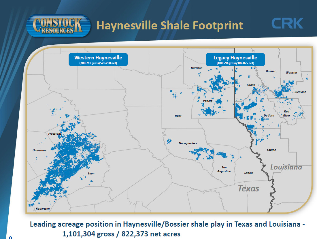 Comstock’s recent focus has been expanding westward into a less-developed zone called Western Haynesville. Here wells are deeper, more expensive to drill, but also significantly more productive.