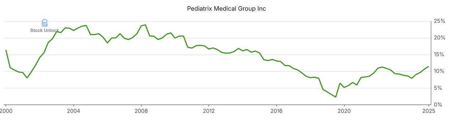 Even at the lowest point of this downturn, Pediatrix stayed cash-flow positive. That alone sets it apart from most broken healthcare roll-ups.