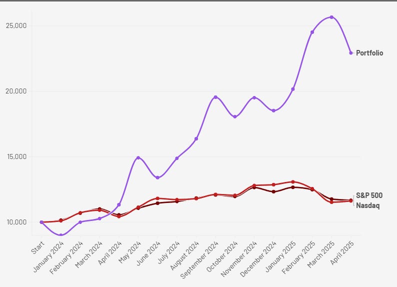 📈 From Jan 1, 2024 to April 30 2025, my personal portfolio is up 129.23%. Then YTD after an incredible May, +55%.